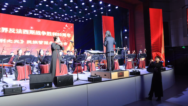 演奏员们以恢弘的民族管弦乐,回溯中华民族从战争阴霾走向胜利荣光的壮烈史诗,献礼80周年。