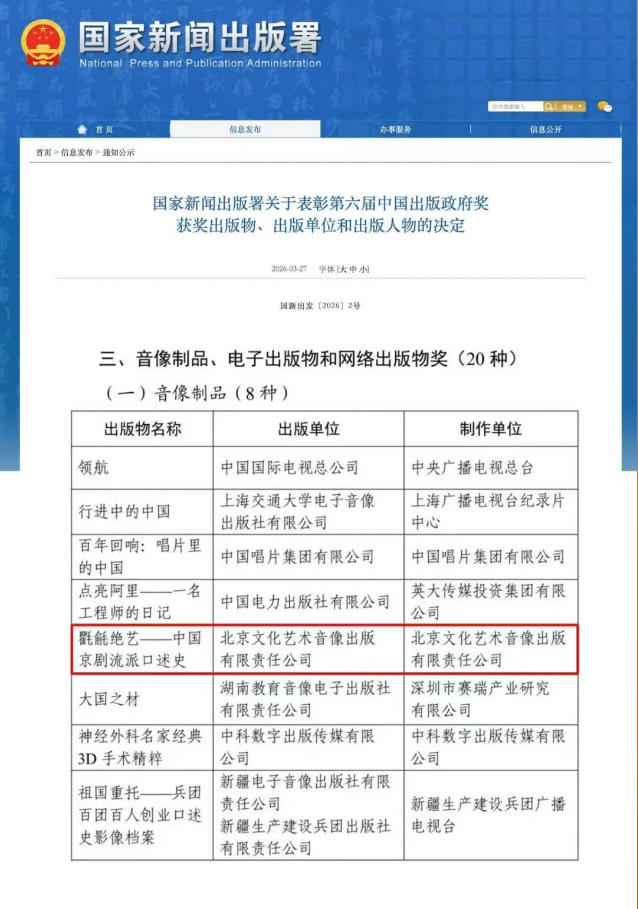 喜报丨首文科集团《氍毹绝艺——中国京剧流派口述史》荣获第六届中国出版政府奖